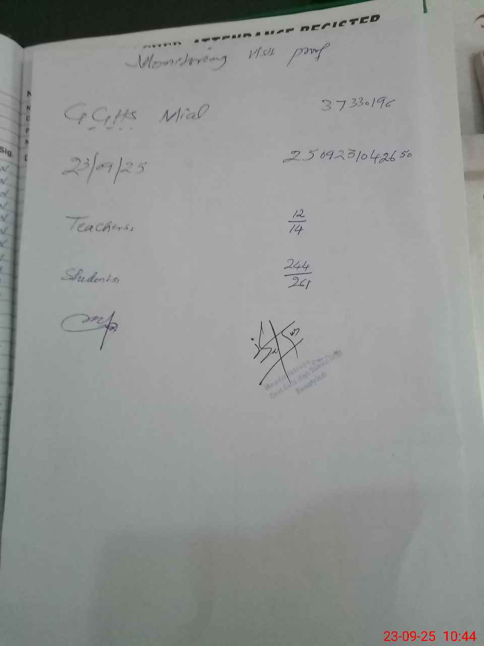 | Attendance Register | Head Teacher | MEA with School | Visit Proof |