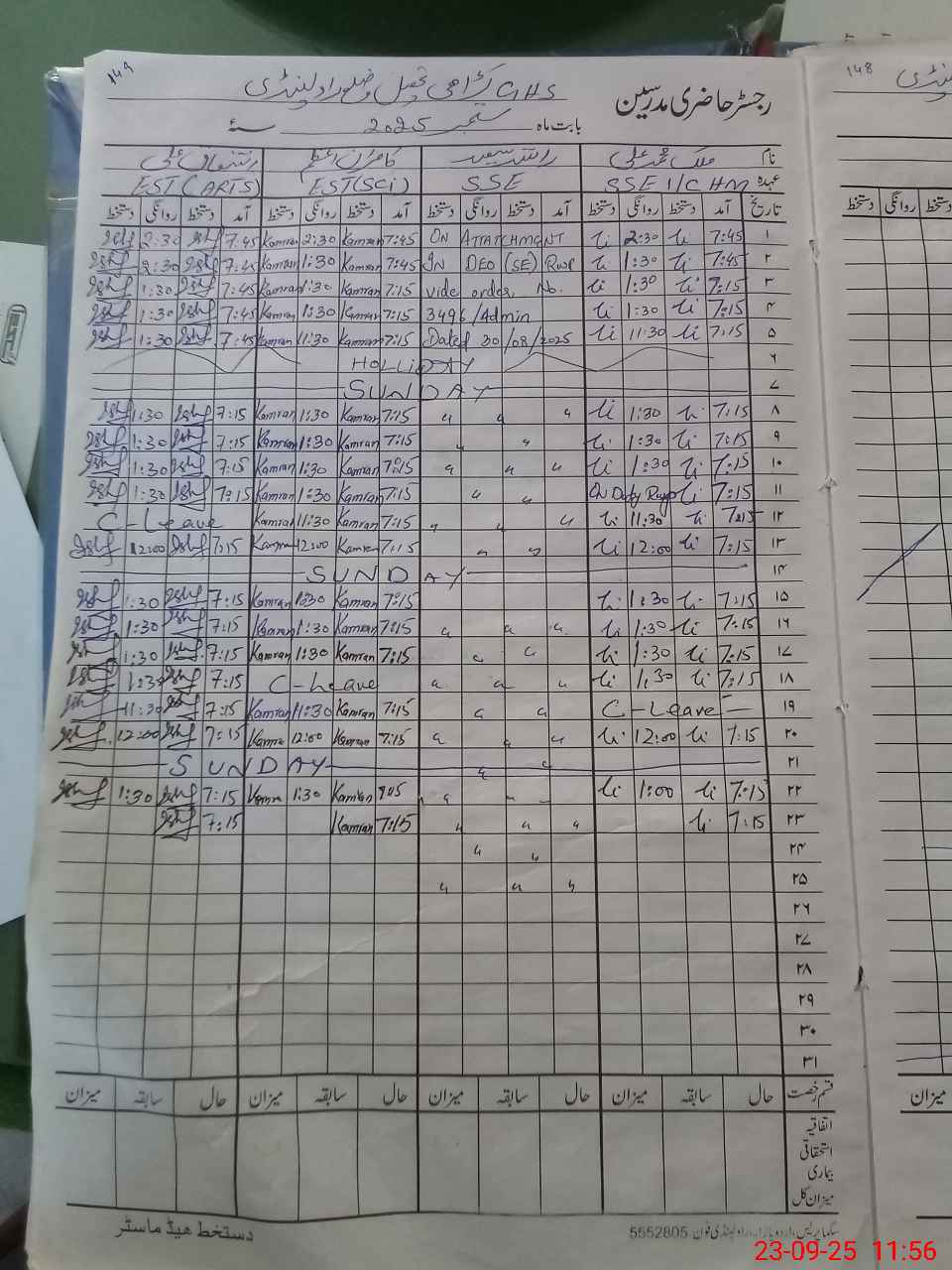 | CNIC | Full Name | Designation | R/C | Absence During Last Calender Month |