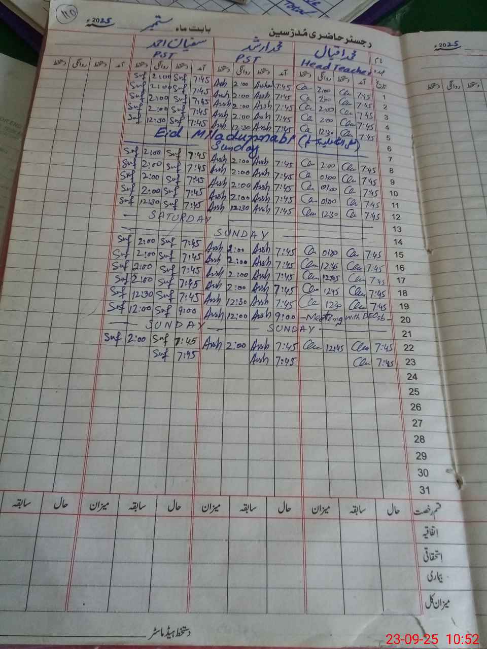 | Name: MU**** IQ**** Designation: (School Headmaster's/Headmistress's) PST Phone/Cell Number: 03**** |