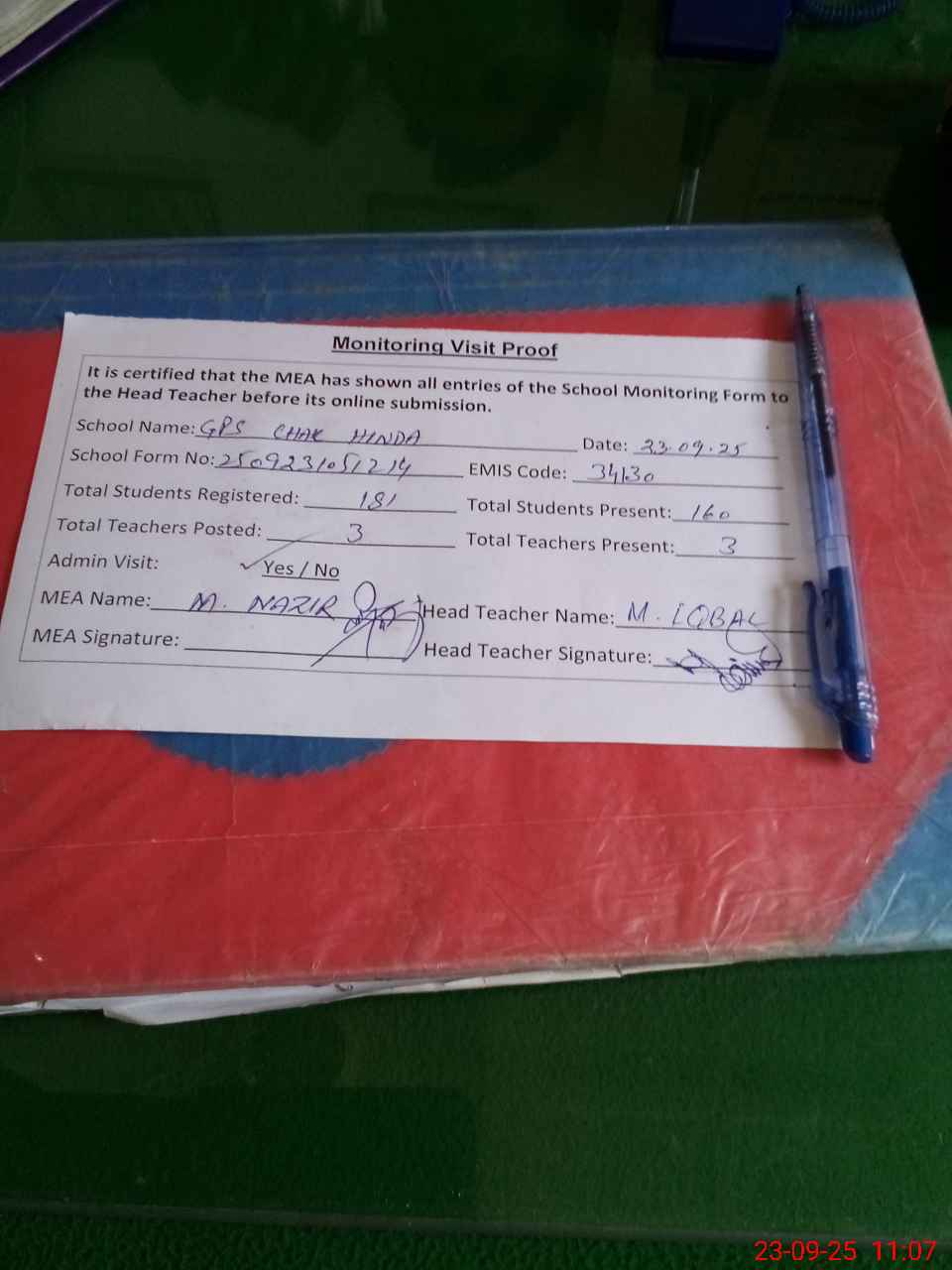 | EMIS Code: 34130226 | Name of School: GPS CHAK HINDA | |||