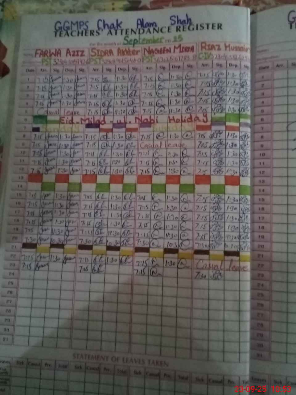 | Leave | Duty | Absent | Maternity | Medical | Ex- Pak |