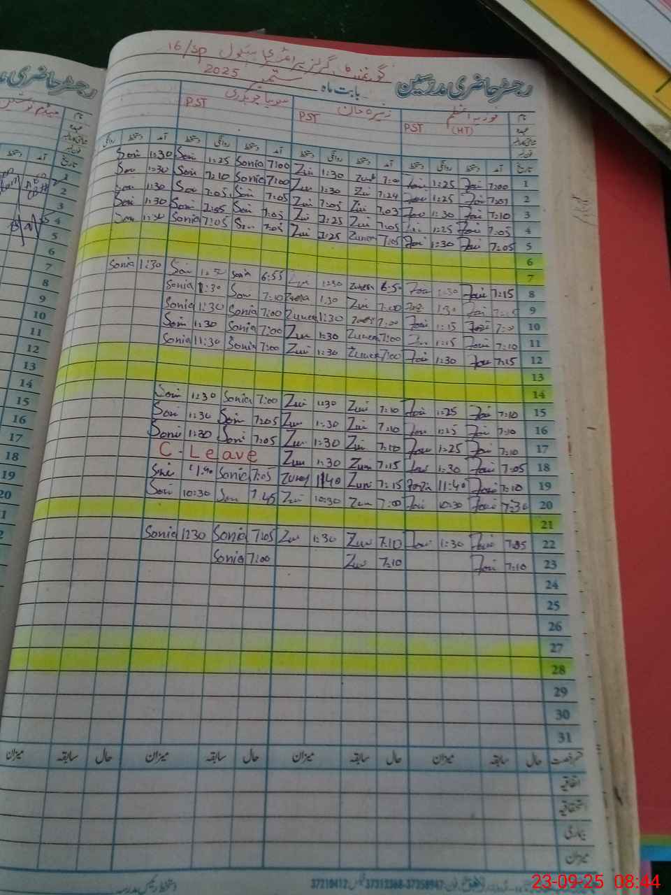 | Name: Zo**** Kh**** Designation: (School Headmaster's/Headmistress's) PST Phone/Cell Number: 03**** |
