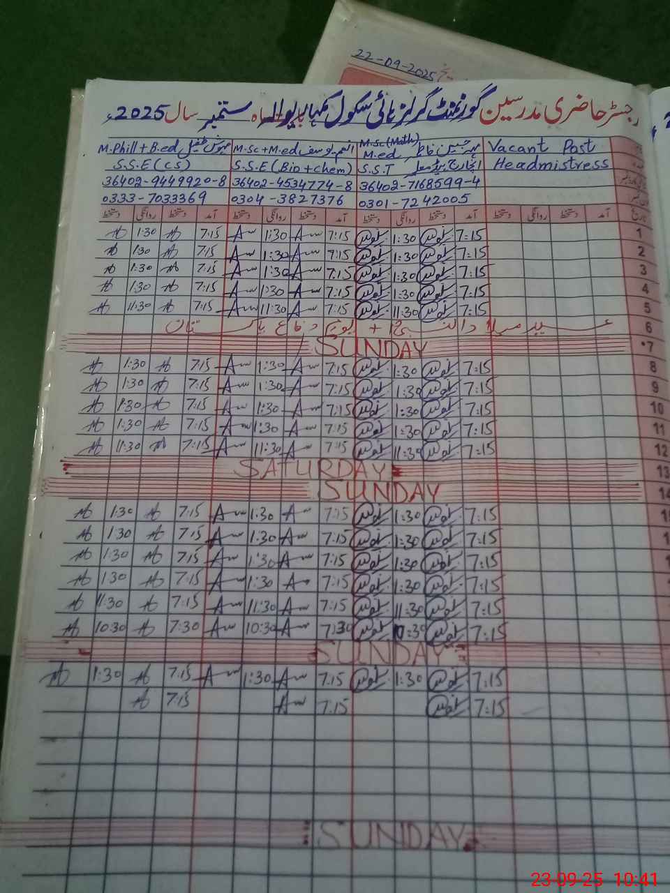 | Name: Ma**** Fa**** Designation: (School Headmaster's/Headmistress's) S.S.T.(Science ) Phone/Cell Number: 03**** |