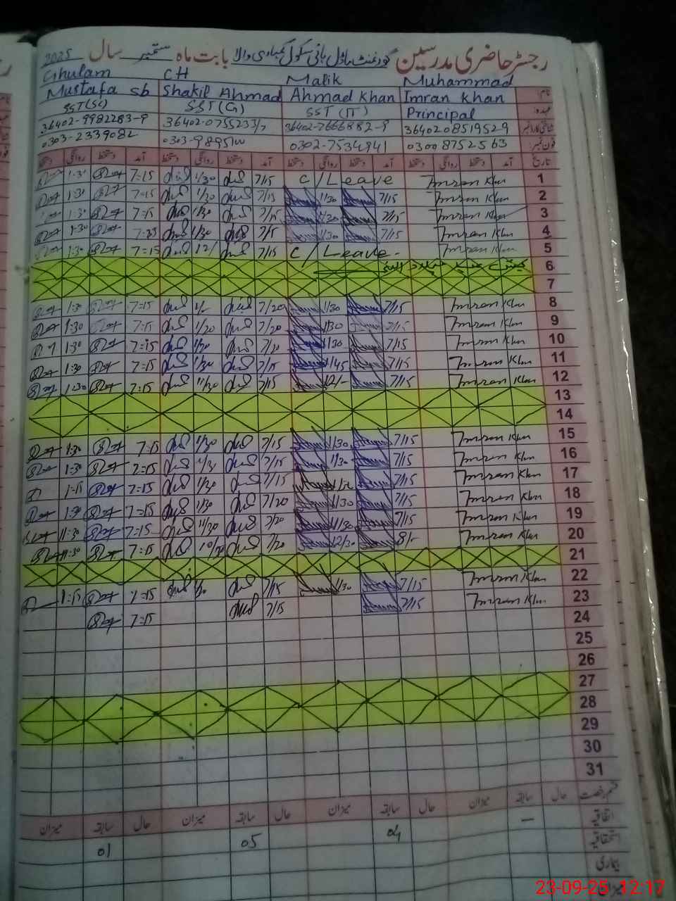 | Name: MU**** IM**** KH**** Designation: (School Headmaster's/Headmistress's) PRINCIPAL Phone/Cell Number: 03**** |