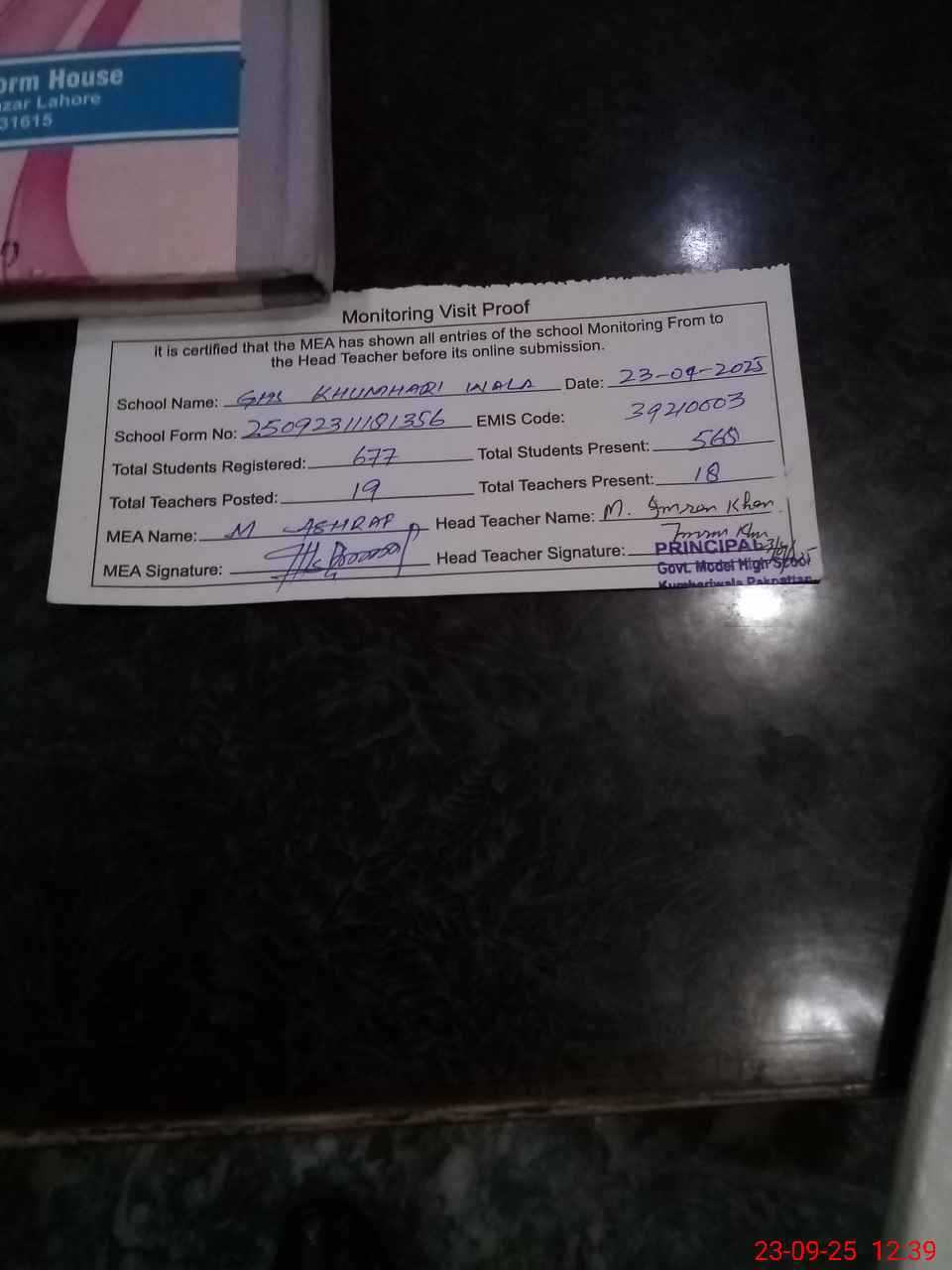 | EMIS Code: 39210003 | Name of School: GHS KUMHARAI WALA | |||