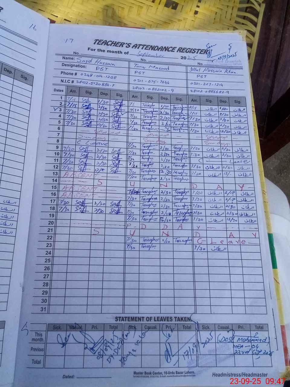 | 38**** | Sa**** Hu**** | PST | Regular | 0 | 0 | 0 | 0 | 0 | 0 | 0 | 0 | 0 | Absent (Un-Authorized) |