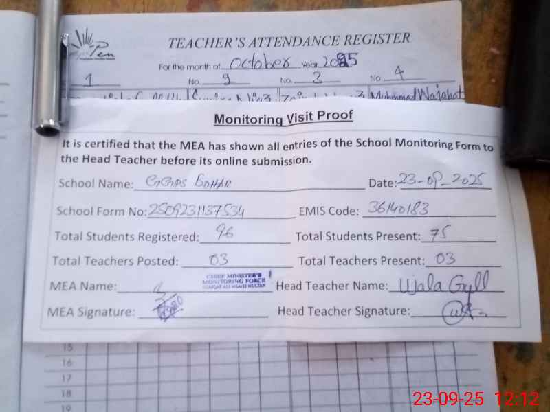 | Attendance Register | Head Teacher | MEA with School | Visit Proof |