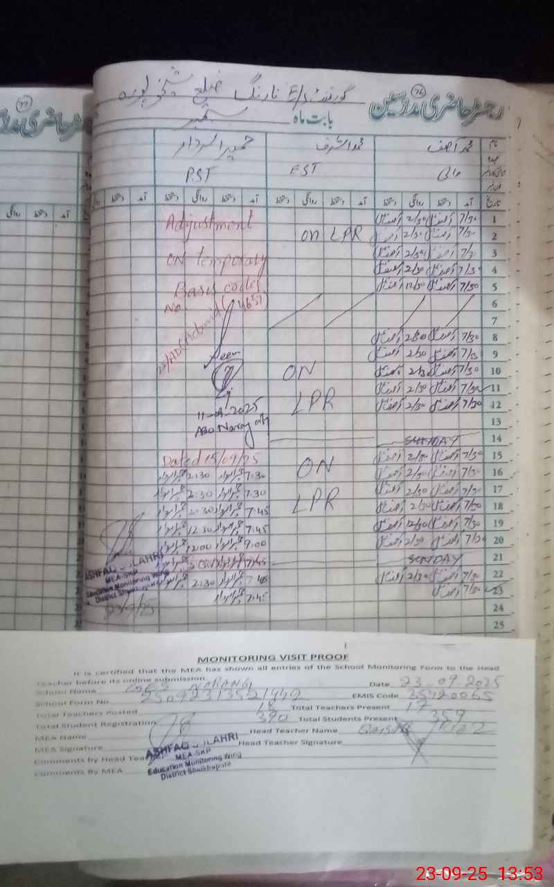 | Attendance Register | Head Teacher | MEA with School | Visit Proof |