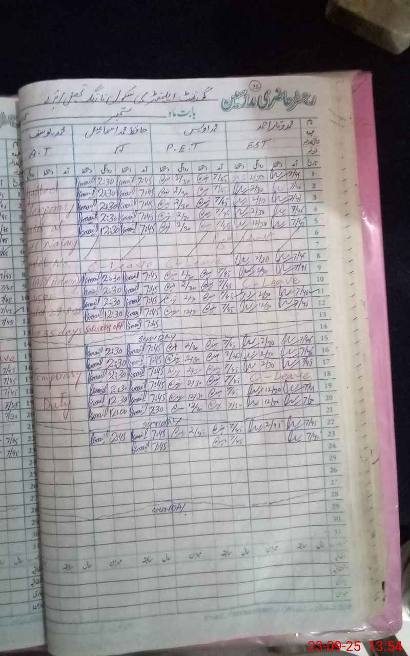 | CNIC | Full Name | Designation | R/C | Absence During Last Calender Month |