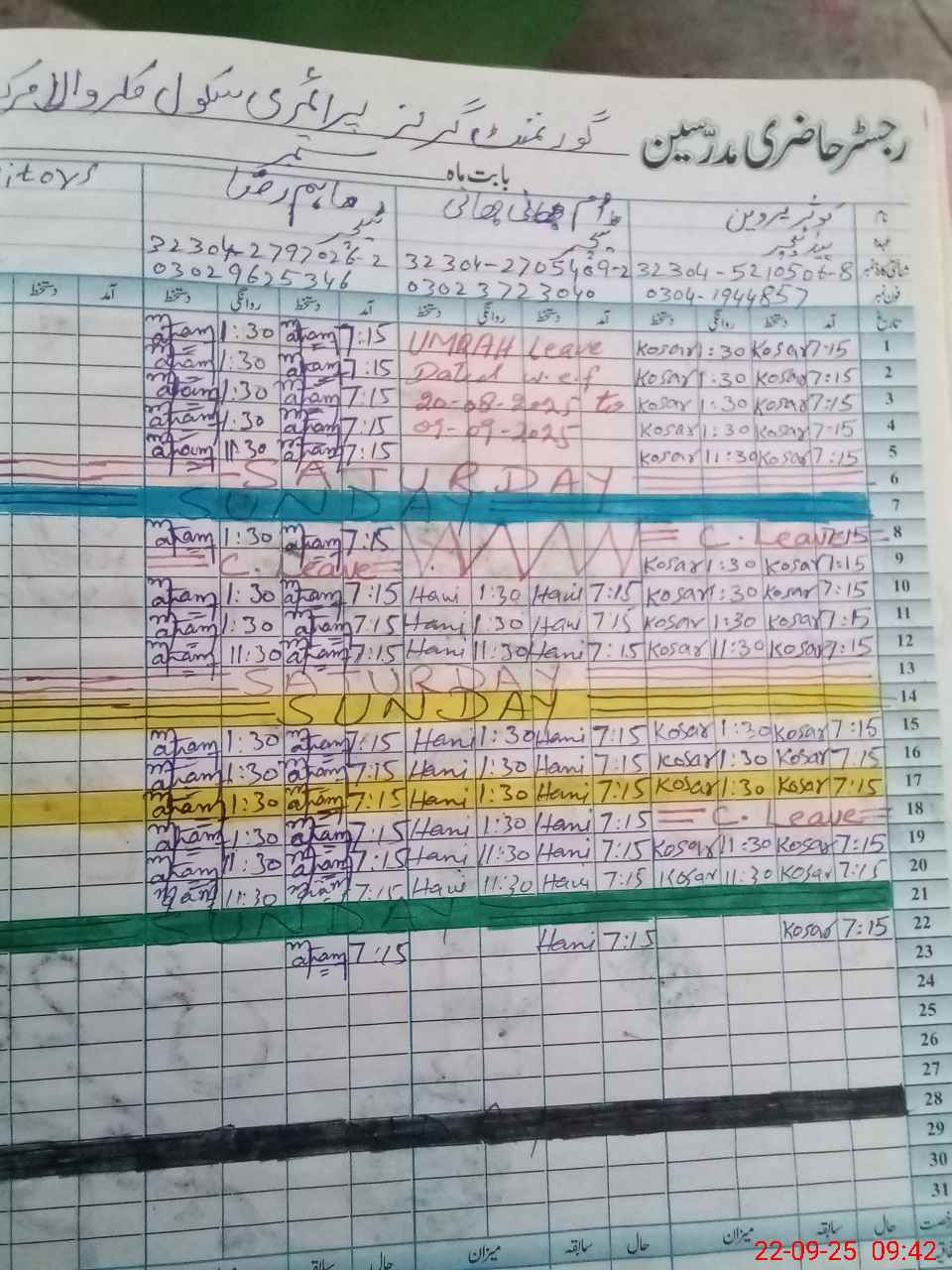| CNIC | Full Name | Designation | R/C | Absence During Last Calender Month |