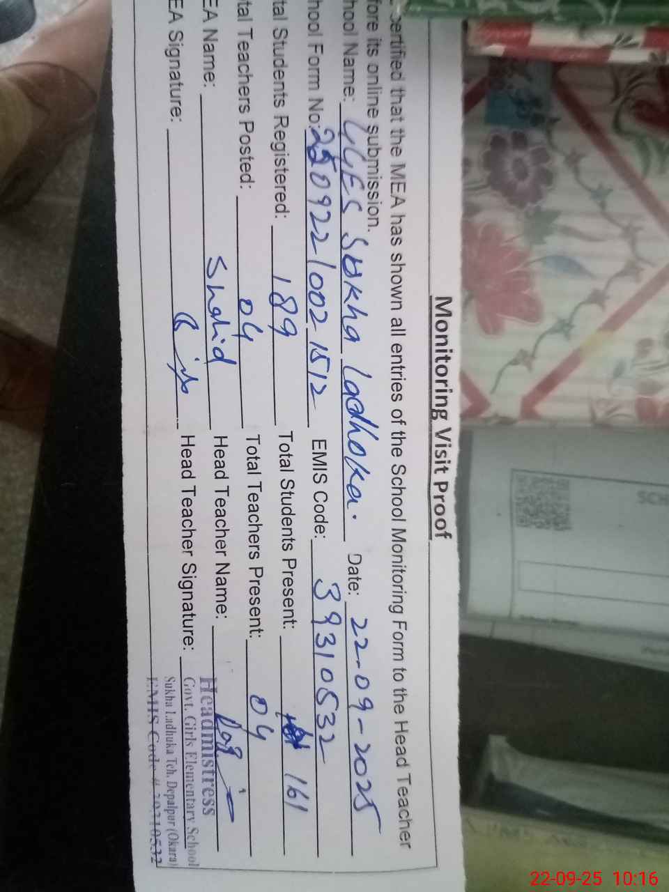 | Certified that this School was Inspected by the Undersigned MEA/DMO Today and the Information Stated Above is as Per Record. | |||||