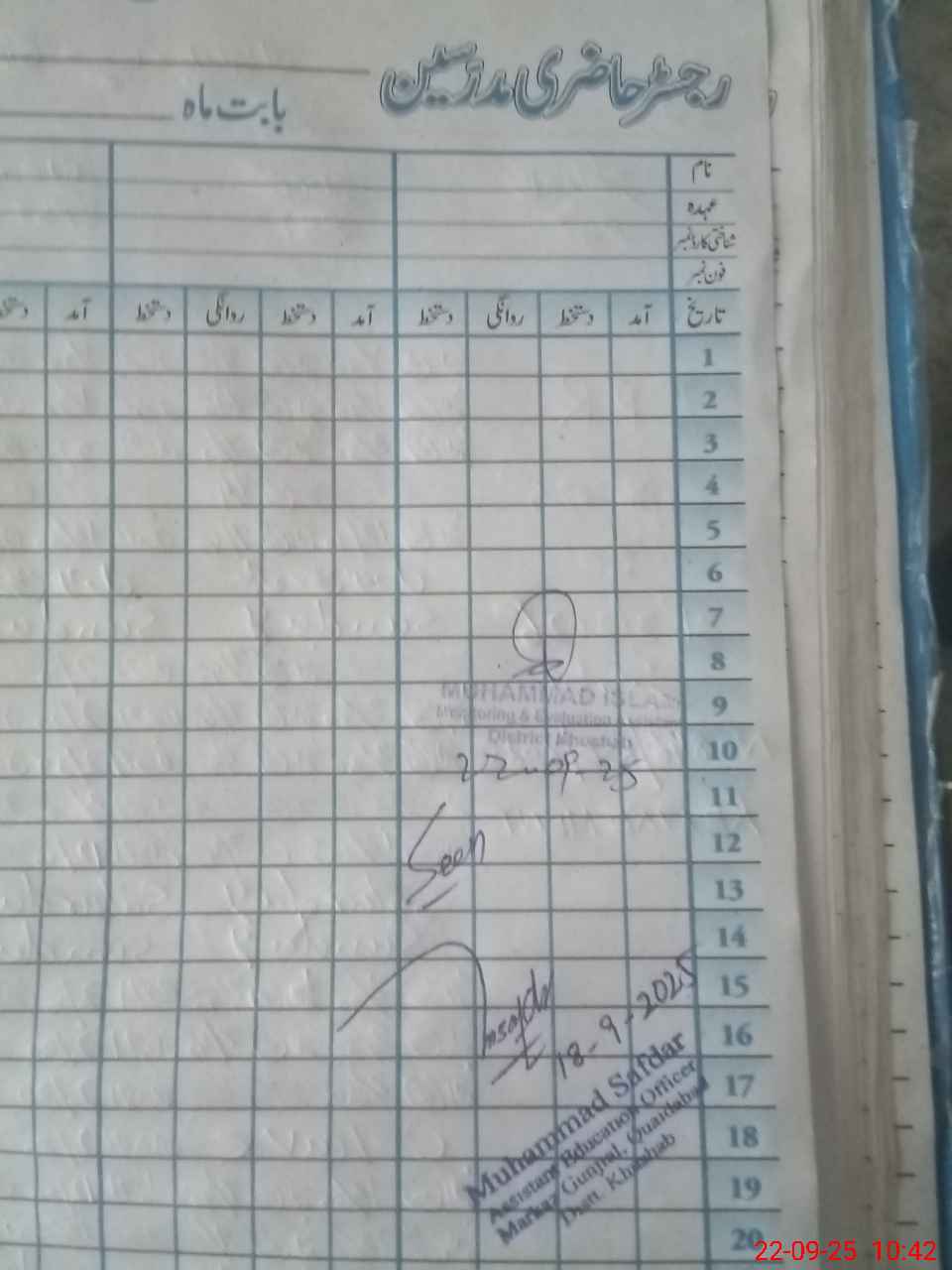 | Name: An**** UrRe**** Designation: (School Headmaster's/Headmistress's) PST Phone/Cell Number: 03**** |
