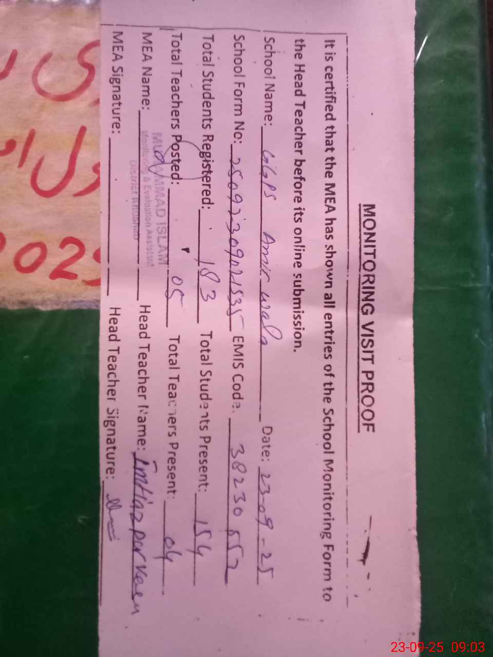 | EMIS Code: 38230552 | Name of School: GGPS AMIR WALA | |||
