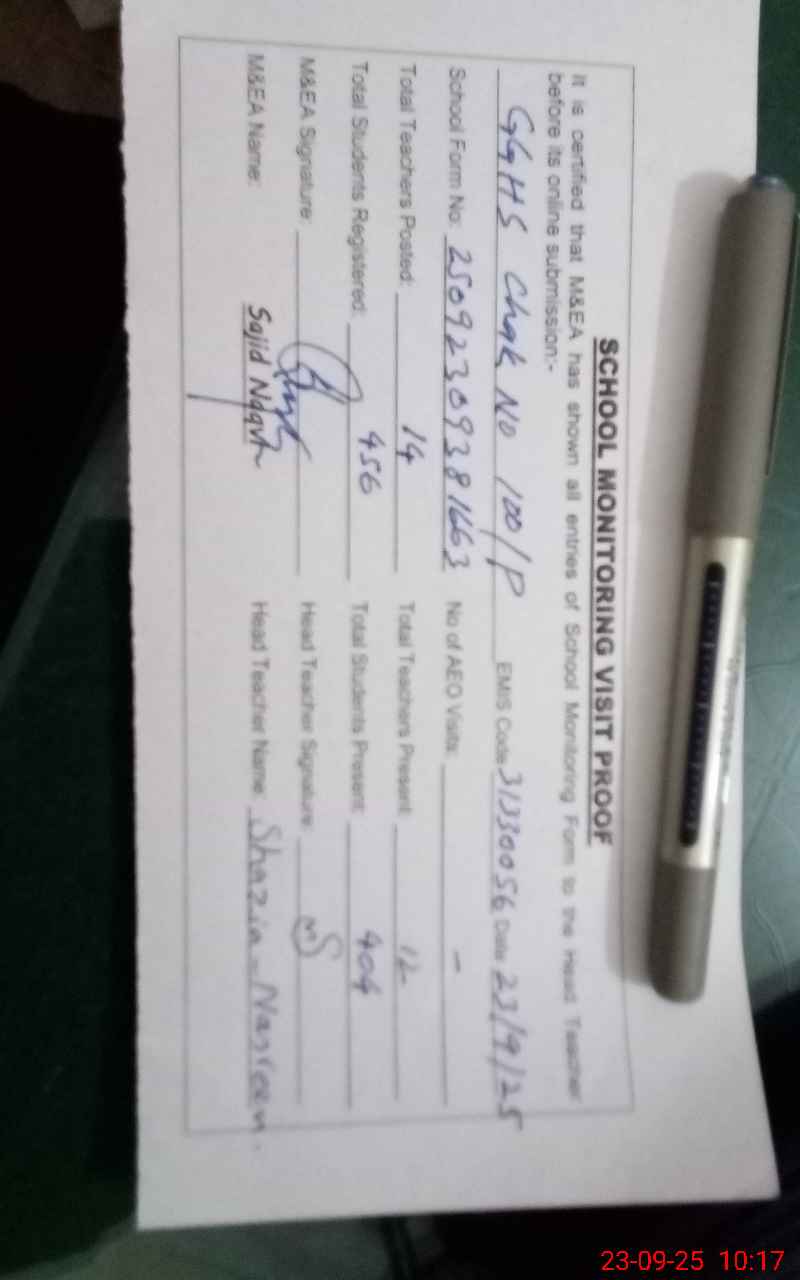 | EMIS Code: 31330056 | Name of School: GGHS CHAK NO. 100/P | |||