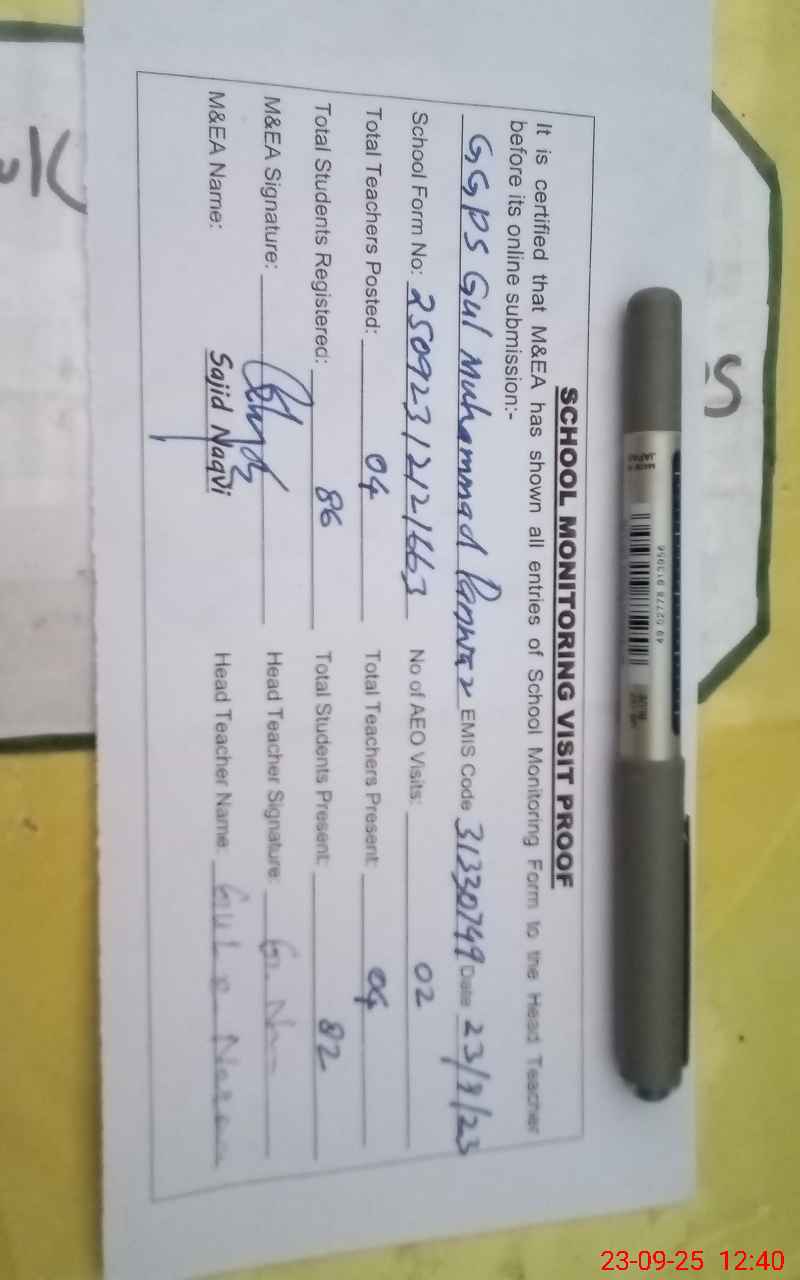 | EMIS Code: 31330749 | Name of School: GGPS GUL MUHAMMAD PANWAR | |||