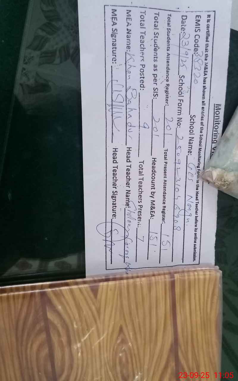| Attendance Register | Head Teacher | MEA with School | Visit Proof |