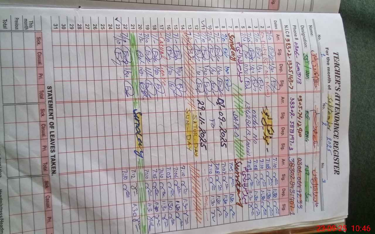 | Name: GH**** FA**** KH**** Designation: (School Headmaster's/Headmistress's) SST( SC ) Phone/Cell Number: 03**** |