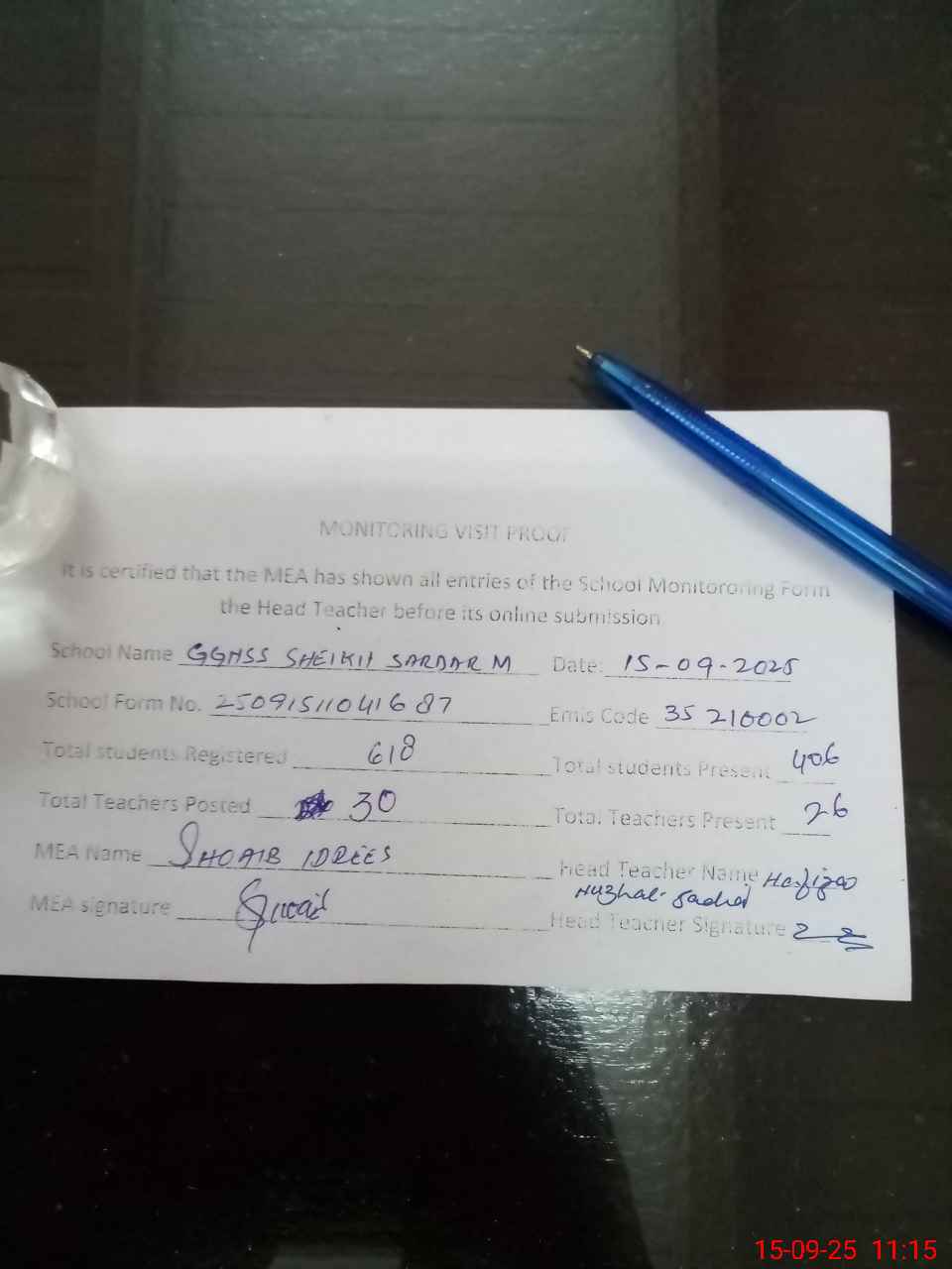 | Monitoring Date: 15-09-2025 | Start Time: 15-09-2025 10:31 AM | End Time: 15-09-2025 11:16 AM | Name of MEA: SH**** ID**** | |