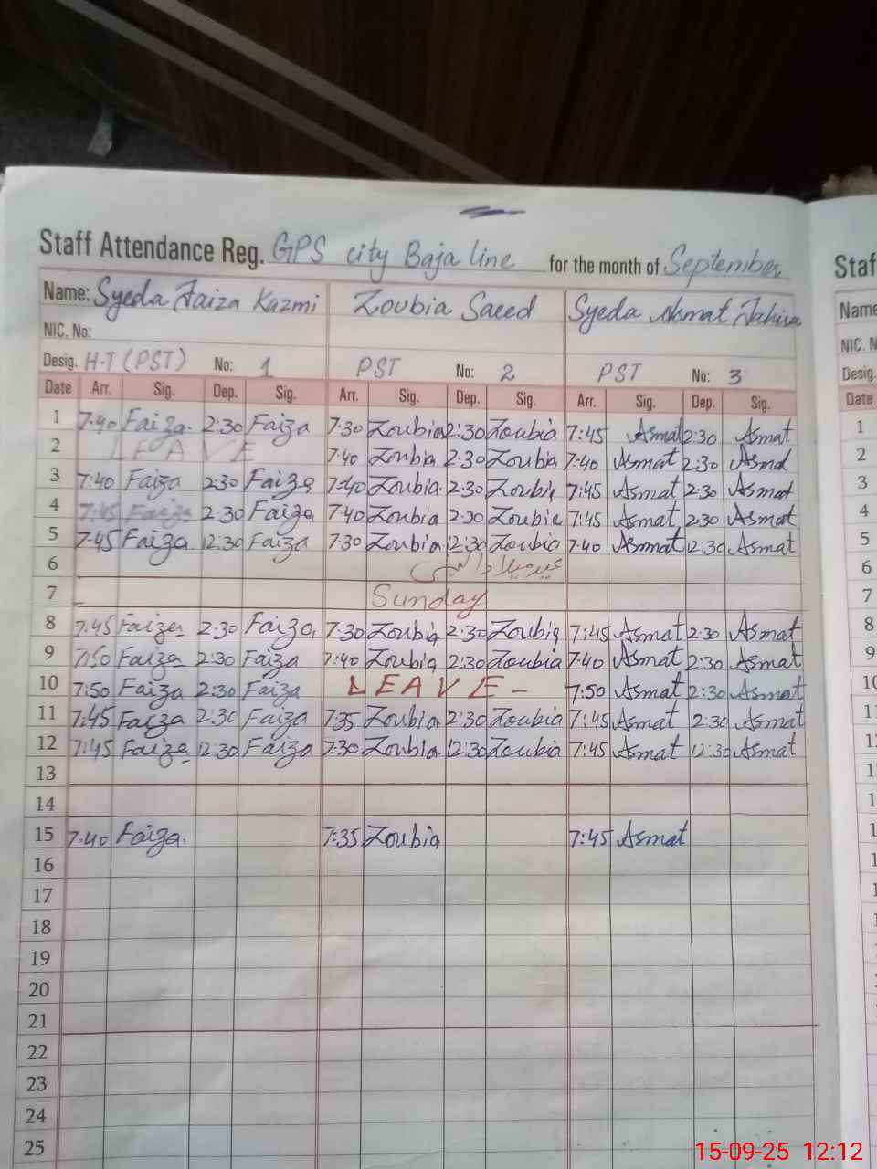 | Name: Sy**** Fa**** Ka**** Designation: (School Headmaster's/Headmistress's) Head Mistress Phone/Cell Number: 03**** |
