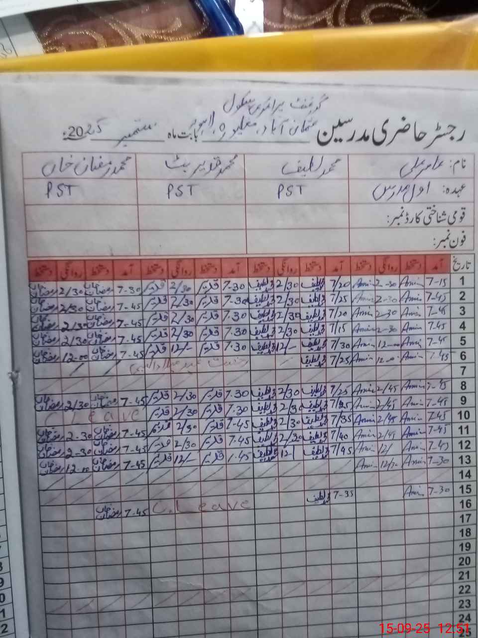 | Name: Am**** AL**** Designation: (School Headmaster's/Headmistress's) PST Phone/Cell Number: 03**** |