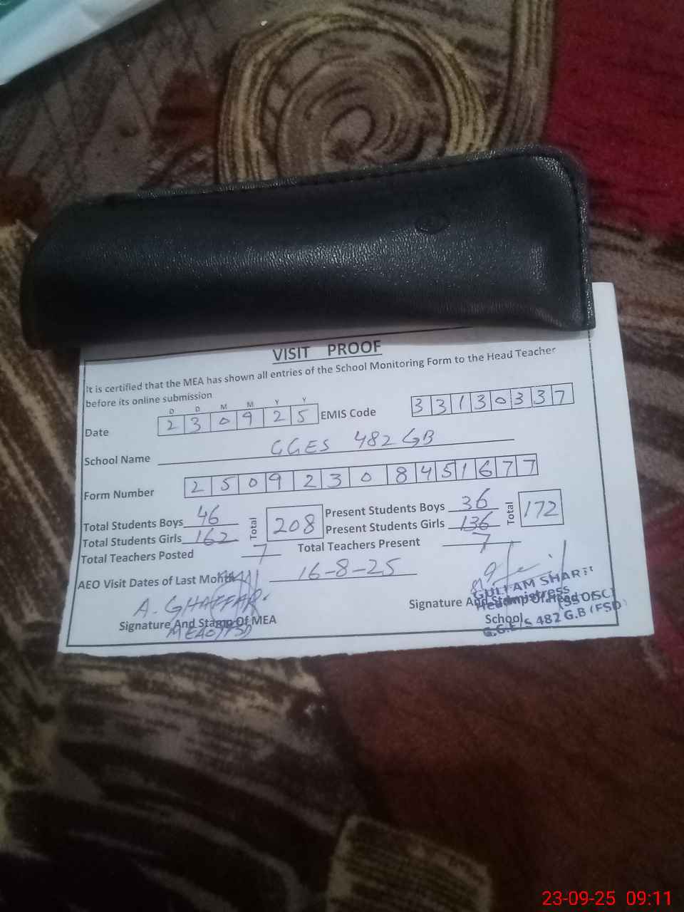 | EMIS Code: 33130337 | Name of School: GGES CHAK NO.482/GB | |||