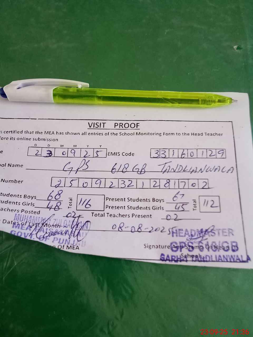 | EMIS Code: 33160129 | Name of School: GPS CHAK 618 GB KHAN GARH TANDLIANWALA | |||