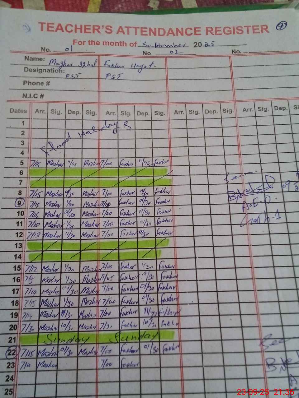 | Name: MA**** IQ**** Designation: (School Headmaster's/Headmistress's) PST Phone/Cell Number: 03**** |