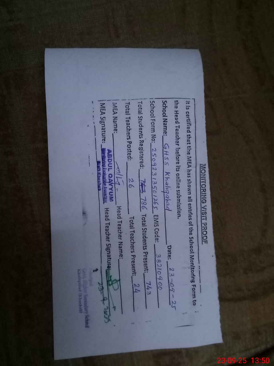 | EMIS Code: 38210900 | Name of School: GHSS KHALIQ ABAD | |||