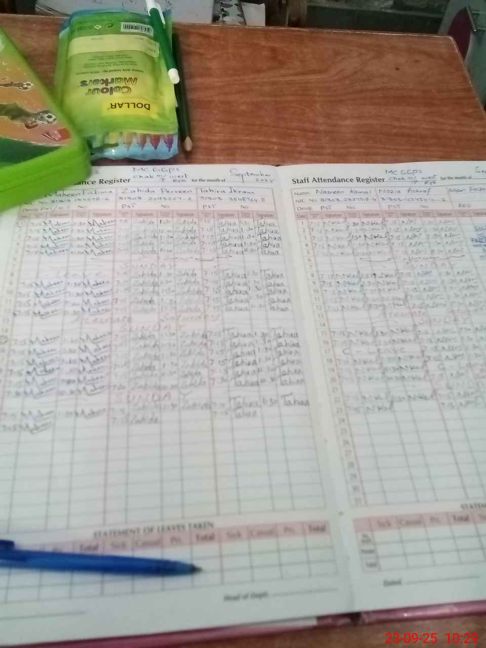 | CNIC | Full Name | Designation | R/C | Absence During Last Calender Month |