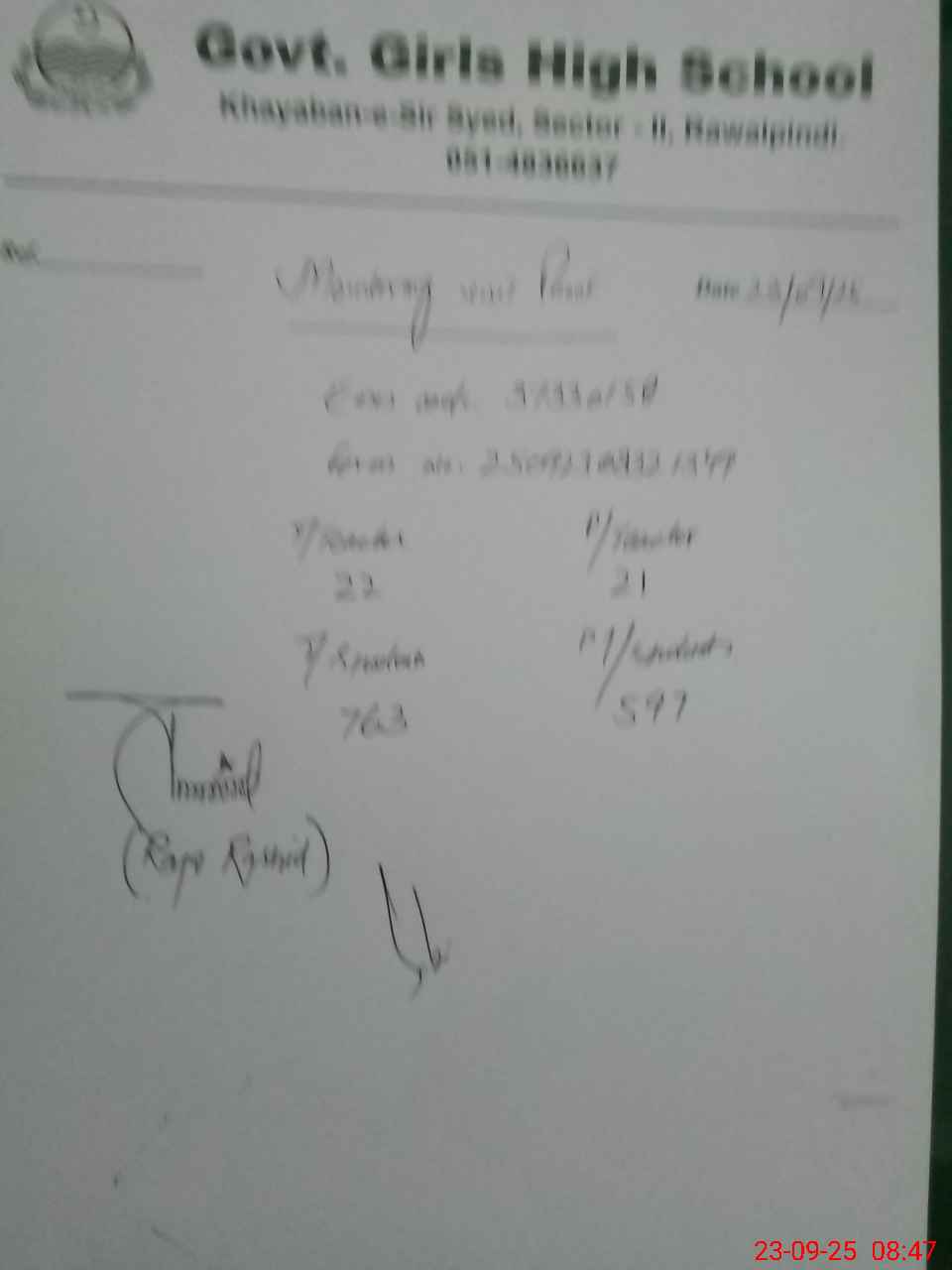 | Name: So**** Ch**** Designation: (School Headmaster's/Headmistress's) Sr Head Mistress Phone/Cell Number: 03**** |