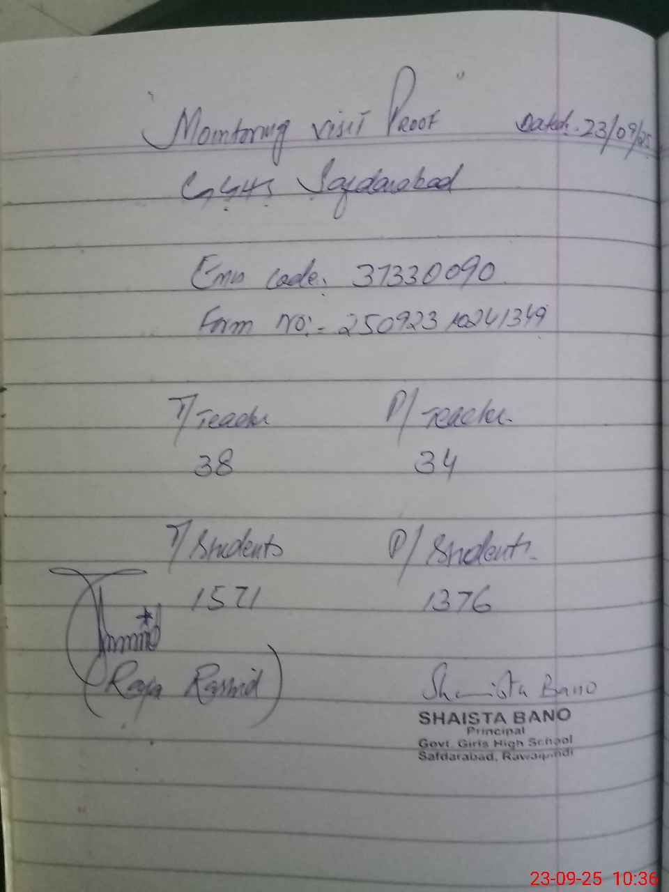 | EMIS Code: 37330090 | Name of School: GGHS SAFDAR ABAD RWP | |||