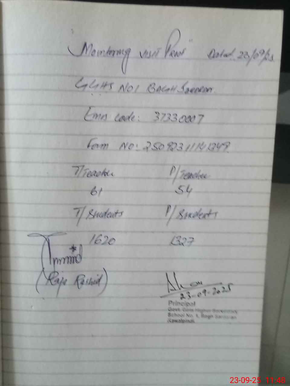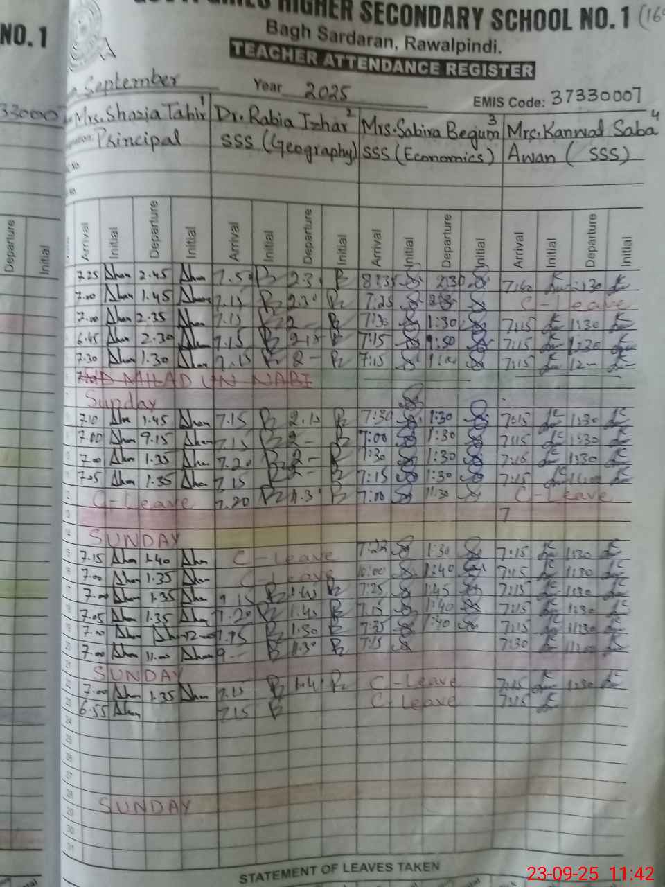 | EMIS Code: 37330007 | Name of School: GGHSS NO.1 BAGH SARDARAN RAWALPINDI CITY | |||