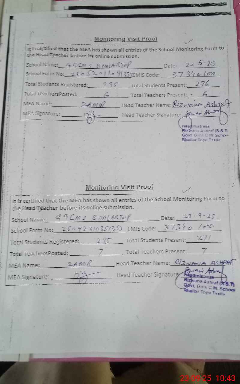 | EMIS Code: 37340100 | Name of School: GGCMS BHALARTOP | |||