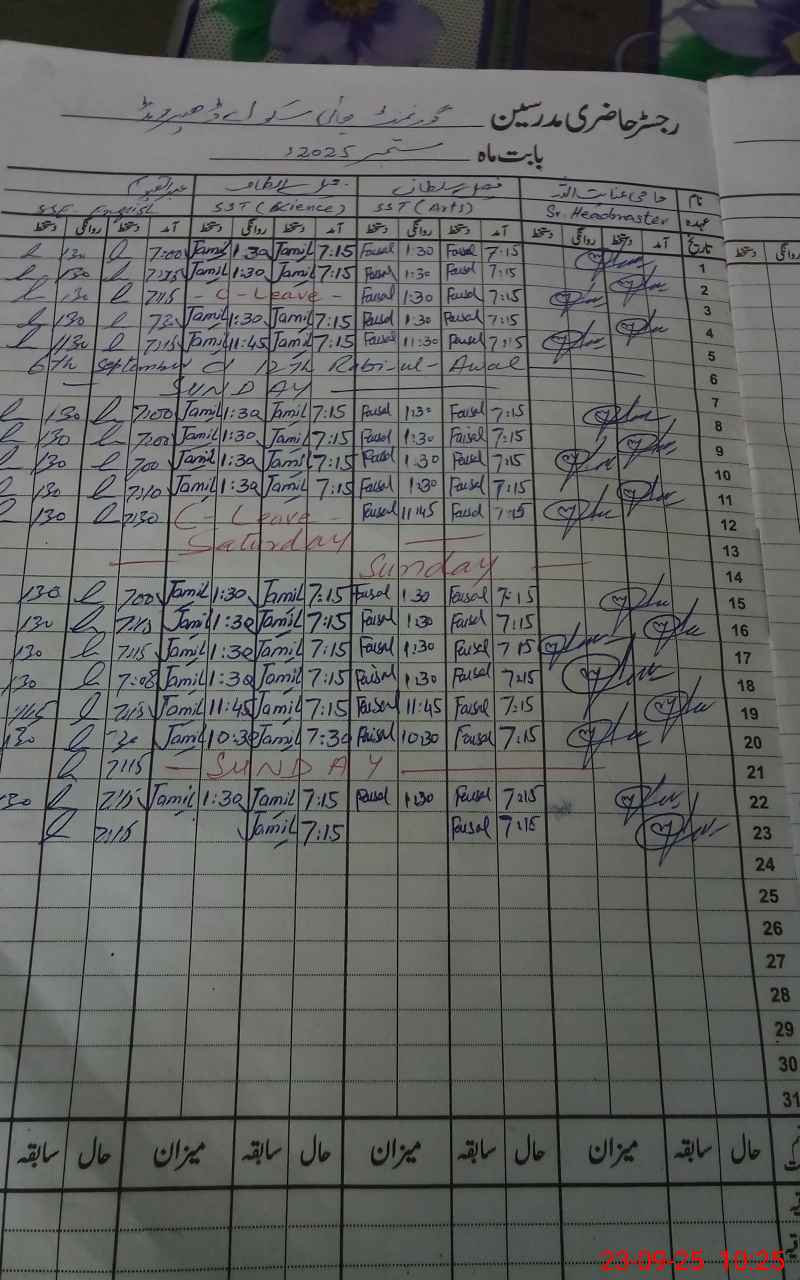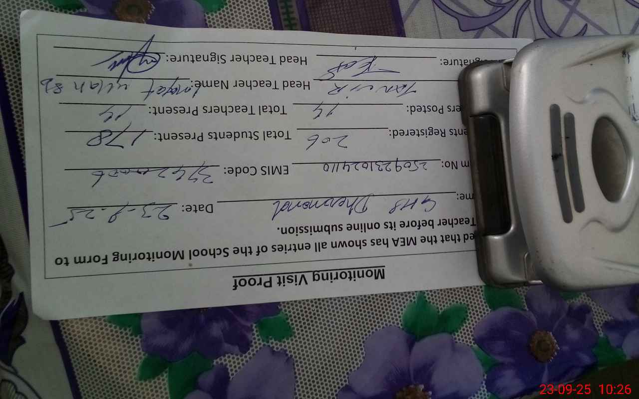| Attendance Register | Head Teacher | MEA with School | Visit Proof |