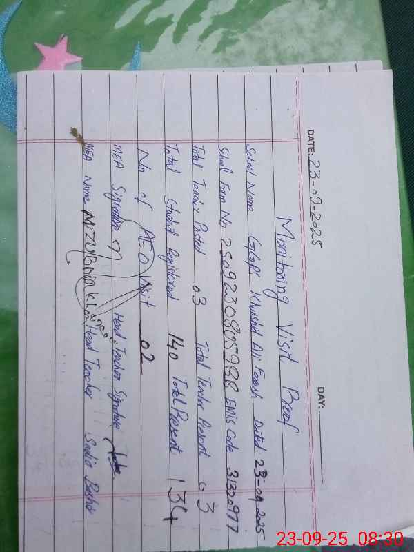 | EMIS Code: 31320977 | Name of School: GGPS KHURSHID ALI FRASH | |||