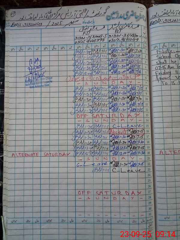 | Name: MU**** IR**** Designation: (School Headmaster's/Headmistress's) PST Phone/Cell Number: 03**** |
