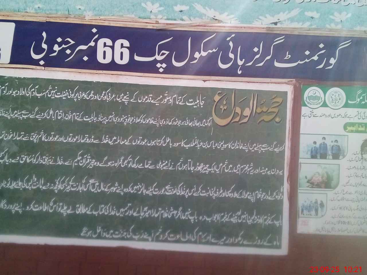 | EMIS Code: 38460096 | Name of School: GGHS CHAK NO.66 SB | |||
