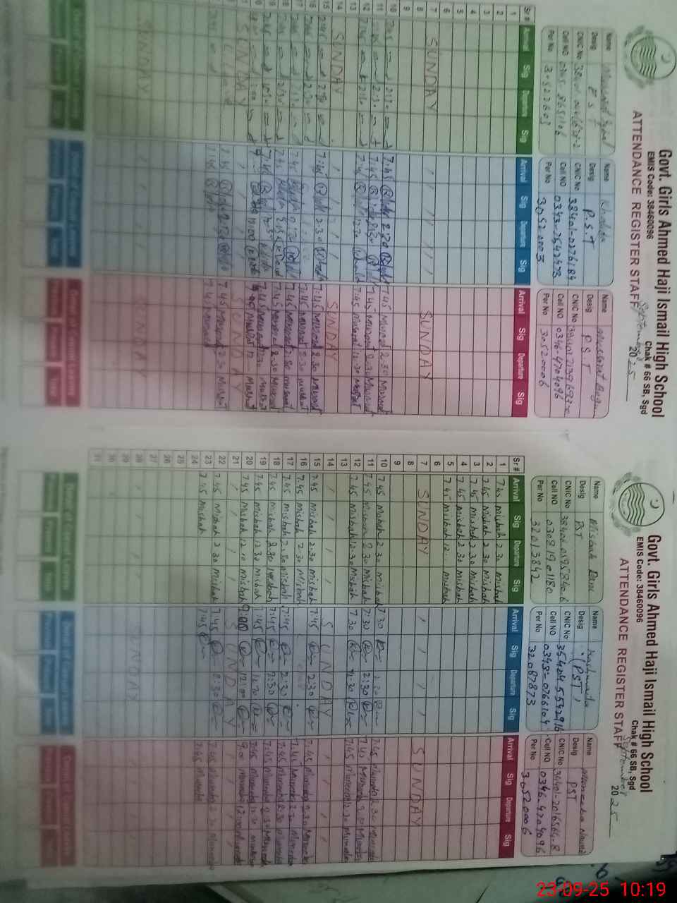 | Name: RA**** JA**** Designation: (School Headmaster's/Headmistress's) SST Phone/Cell Number: 03**** |
