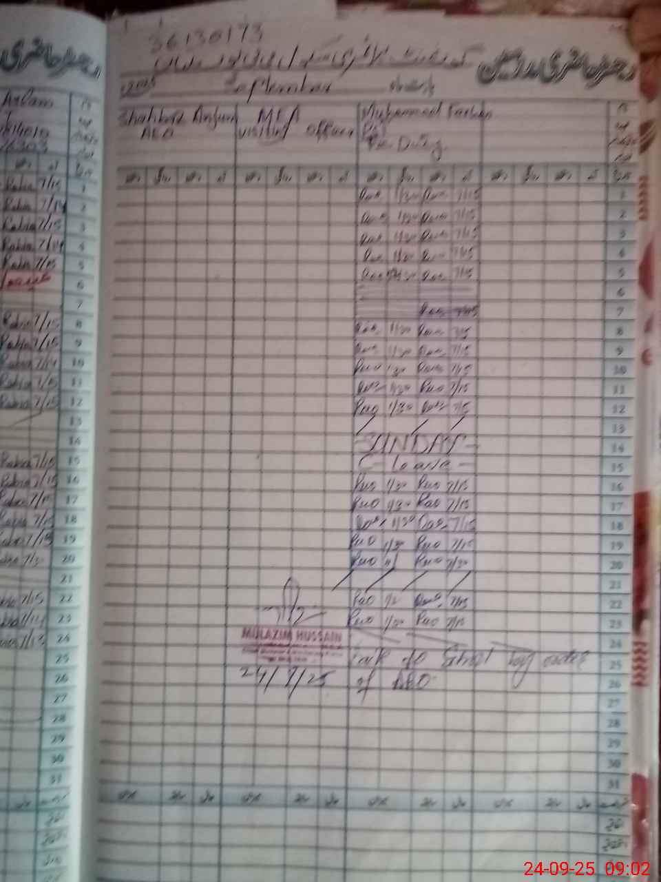| CNIC | Full Name | Designation | R/C | Absence during last cal. month |