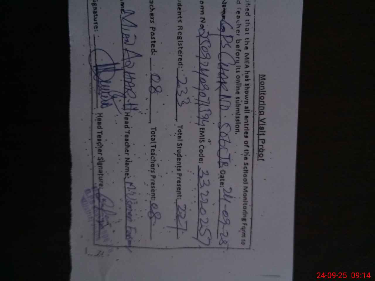| Remarks (Use Separate Page if Required): Chokidaar Allah Dutta Found Absent During MEA Visit from 27 August 2025 till Now | |||||