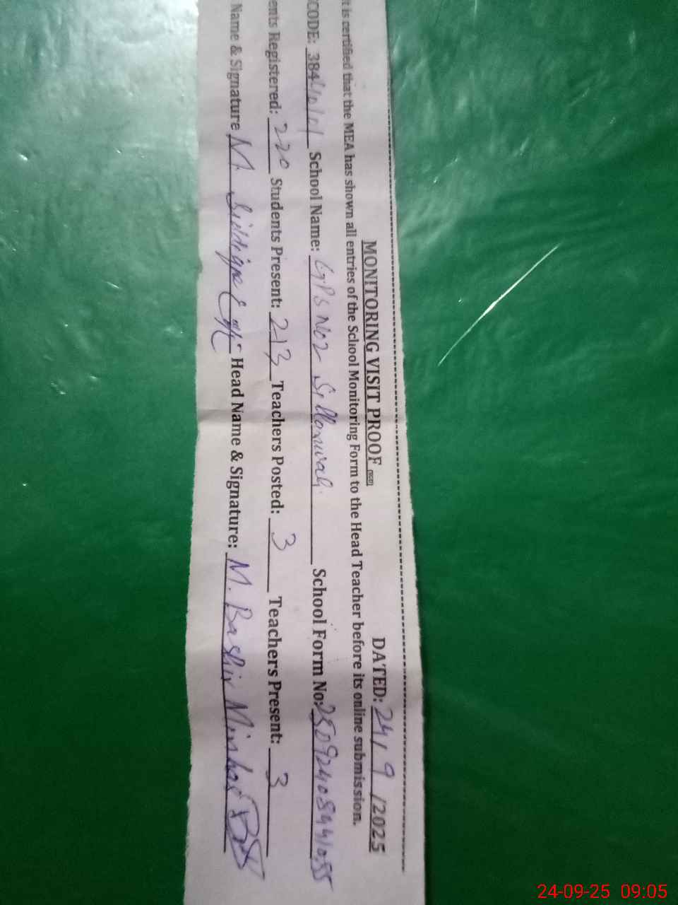 | Monitoring Date: 24-09-2025 | Start Time: 24-09-2025 08:35 AM | End Time: 24-09-2025 09:07 AM | Name of MEA: MU**** SI**** | |