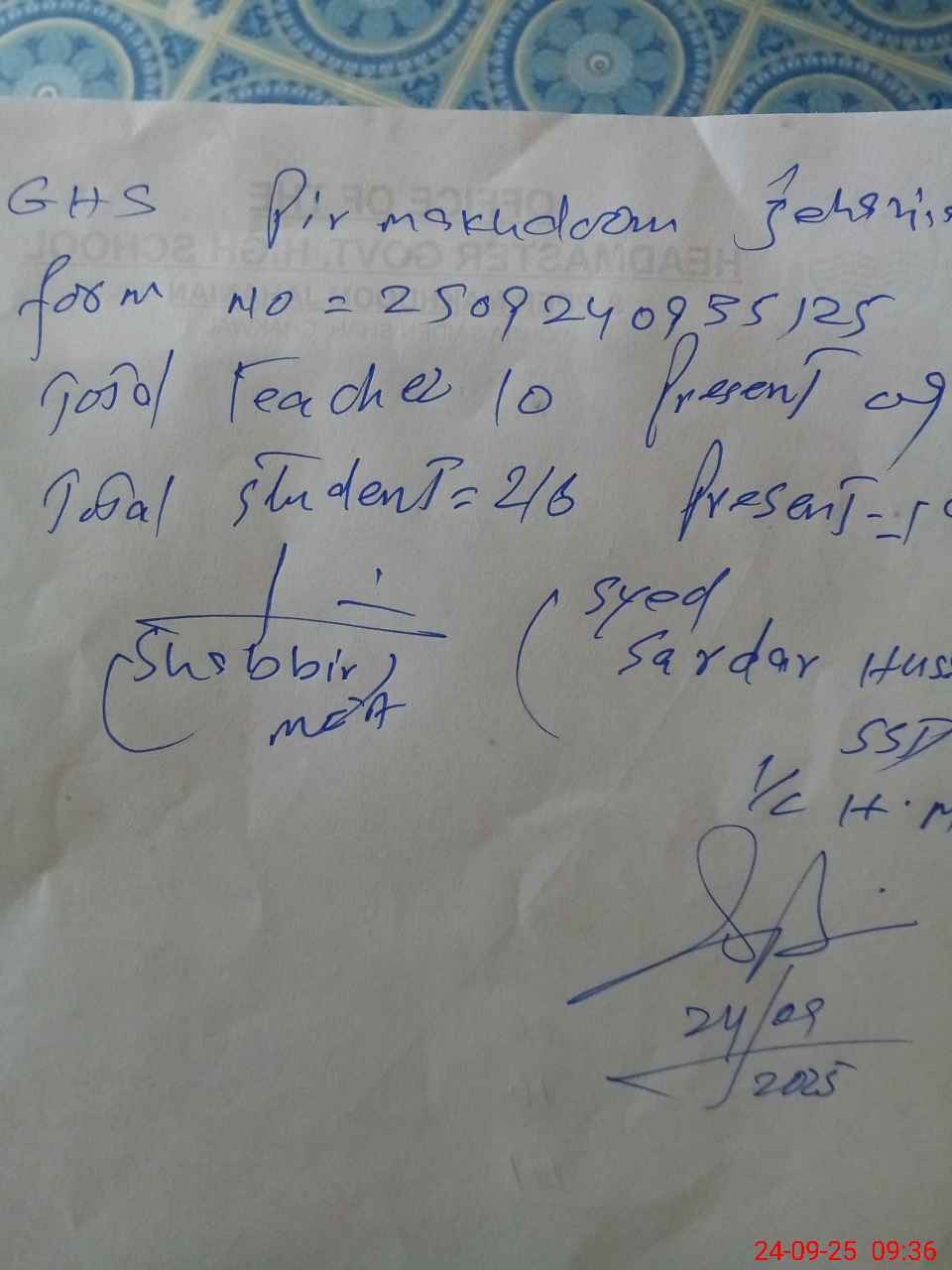 | Name: Az**** UrRe**** Designation: (School Headmaster's/Headmistress's) I/C Headmaster Phone/Cell Number: 03**** |