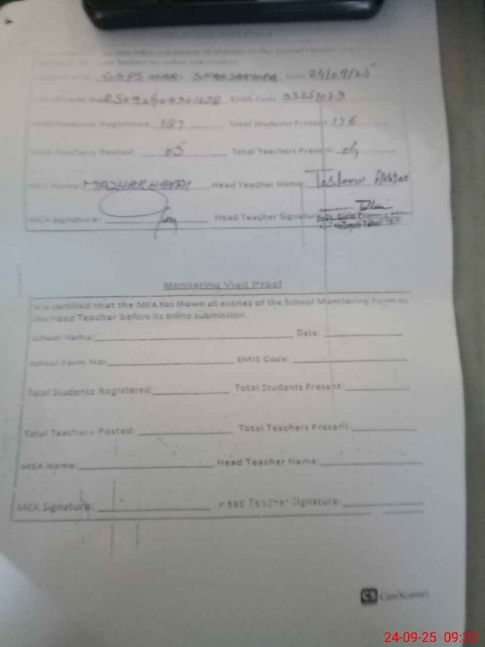 | EMIS Code: 33251023 | Name of School: GGPS MARI SHAH SAKHERA SHUMALI | |||