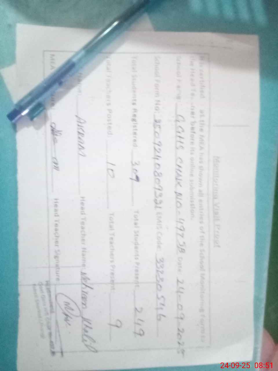 | Certified that this School was Inspected by the Undersigned MEA/DMO Today and the Information Stated Above is as Per Record. | |||||