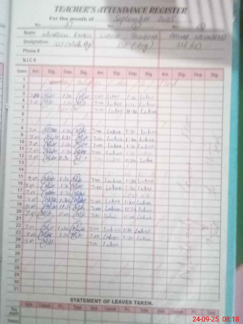 | Name: Me**** Kh**** Designation: (School Headmaster's/Headmistress's) SST Phone/Cell Number: 03**** |
