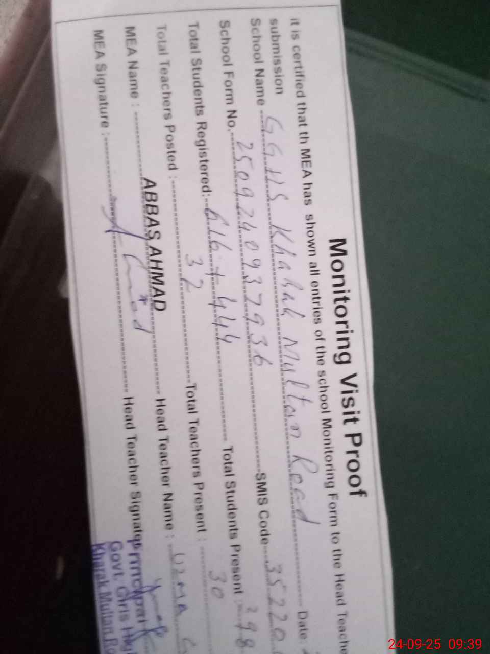 | EMIS Code: 35220139 | Name of School: GGHS KHARAK MULTAN ROAD | |||