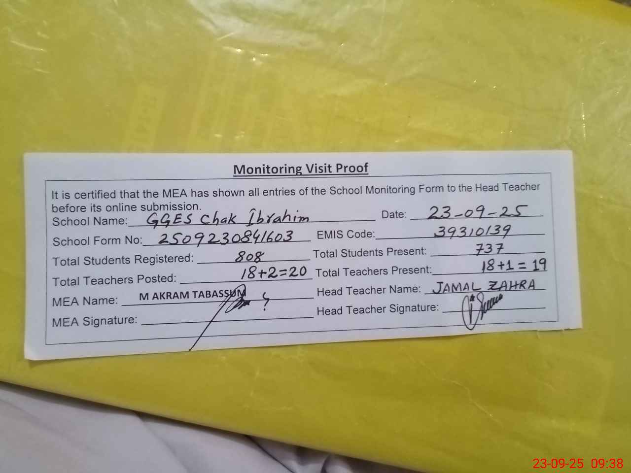 | EMIS Code: 39310139 | Name of School: GGES CHAK IBRAHIM BASIR PUR | |||
