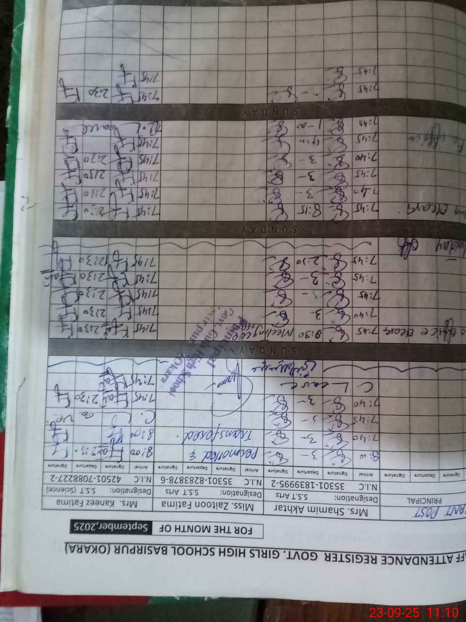 | CNIC | Full Name | Designation | R/C | Absence during last cal. month |