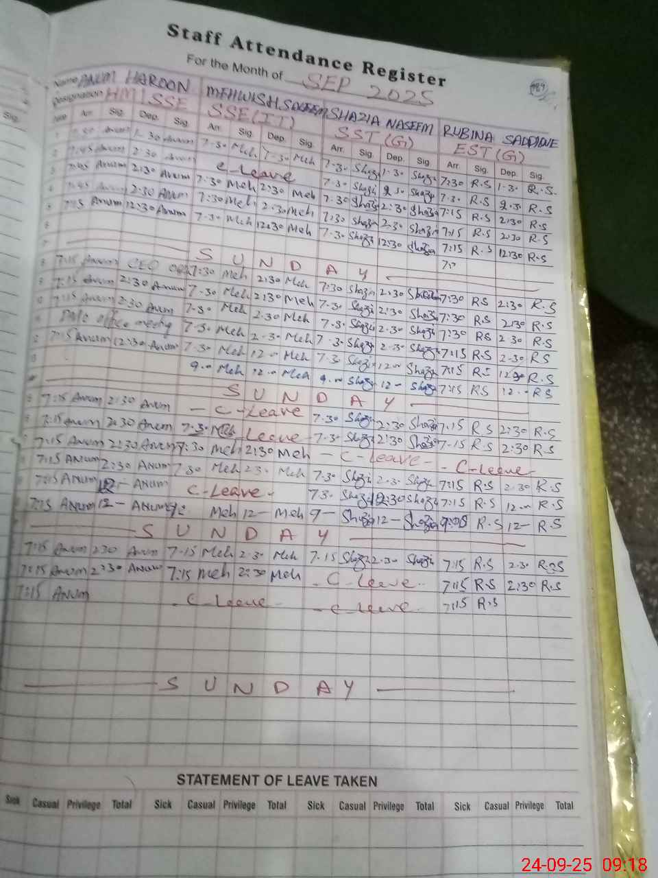 | 35**** | Sh**** Na**** | 1 | 0 | 0 | 1 | 0 | 0 | 0 | 0 | 0 | 0 | Absent (Un-Authorized) | |