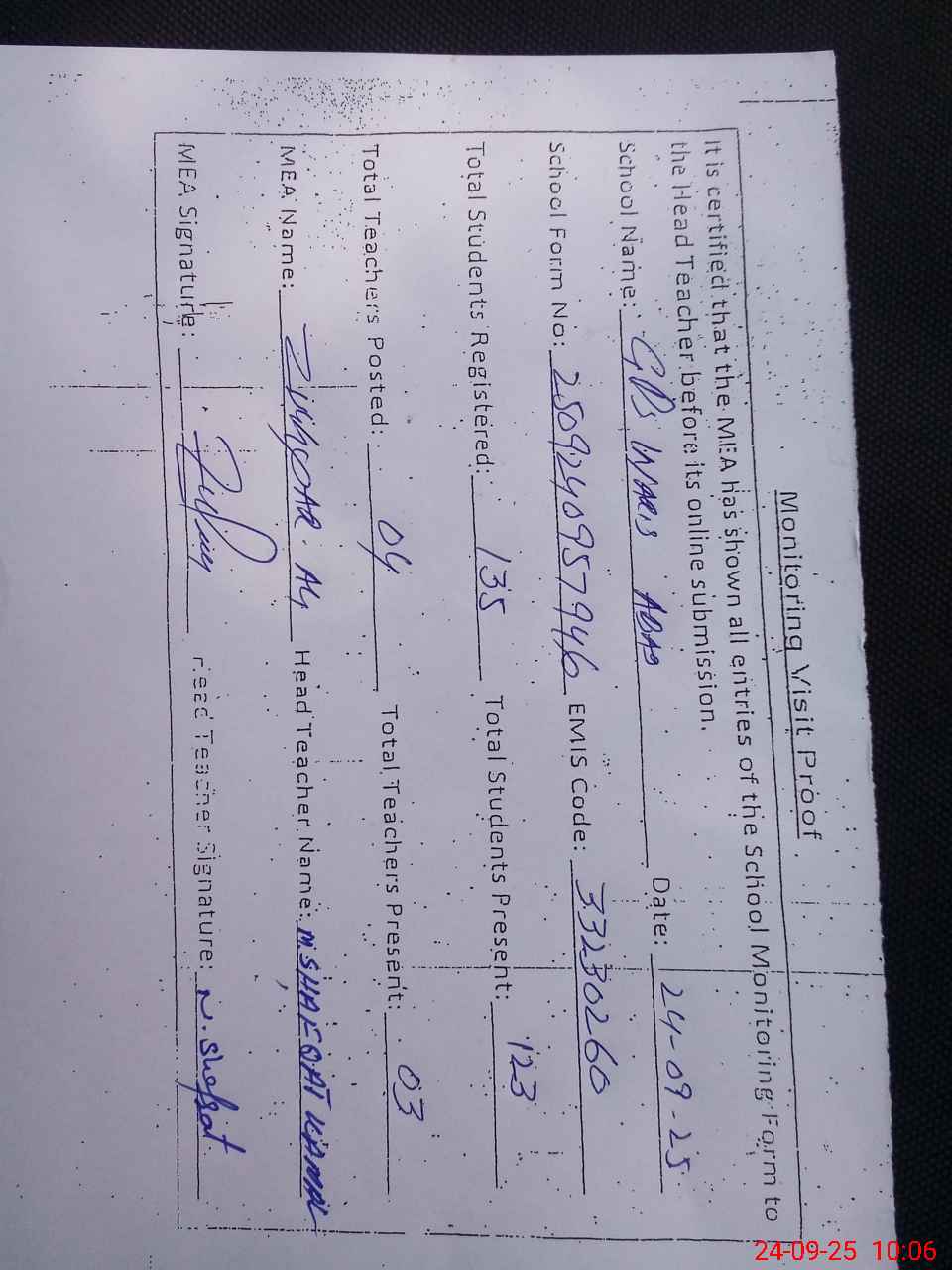 | Certified that this School was Inspected by the Undersigned MEA/DMO Today and the Information Stated Above is as Per Record. | |||||